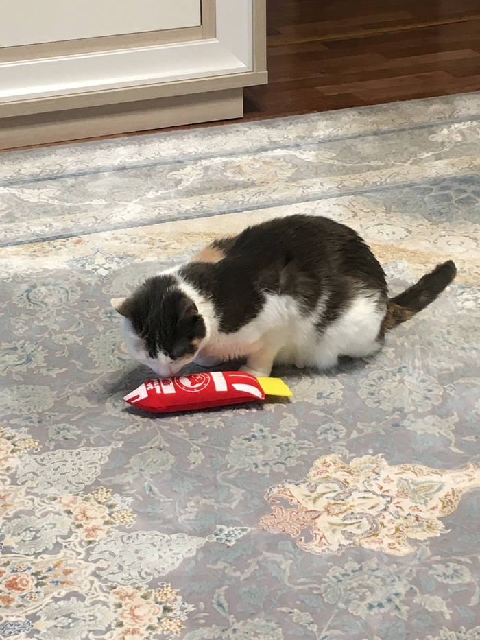 Пушистые уже по достоинству оценили новые игрушки, магниты расположились на холодильнике, а Lego после сборки займёт почётное место в коллекции)