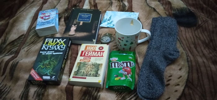 Снегурочка учла все мои увлечения и пожелания - любовь к книгам, кофе, сладостям и ежедневникам. Книга скрасила мне самоизоляцию. В красной коробочке свечи с запахами праздников - словами не передать, как они создают уютную зимнюю атмосферу даже без отсутствия снега.