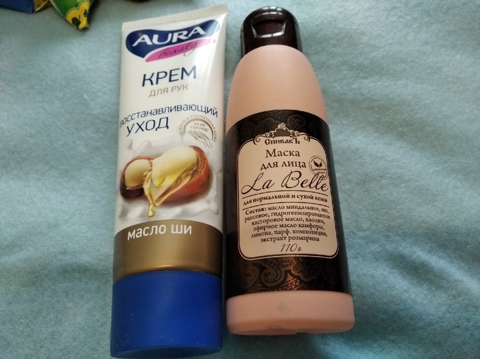 В интересах я указала, что всегда рада жирному крему для рук зимой - и вот он, вкусно пахнущий! К нему ещё и маска для лица.