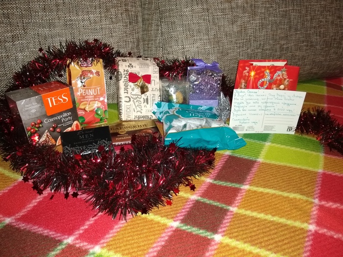 Дело было вечером, делать было нечего. Решила вернуться на Пикабу увидела и вспомнила, что есть такое проект как АДМ. Сказали, что уже все опоздала и до свиданья. Потом птичка напела, что есть еще АДМ последний вагон, осталось несколько дней до распределения. И тут я как успела, в последний день! Накатала какое-то кривое письмо и оболдела, что это будет читать мой Дед Мороз или Снегурочка. И занялась подготовкой подарка для моего внучка (надеюсь ,ему дойдет до НГ и понравиться. Я старалась). И даже забыла ,что мне тоже кто-то пришлет подарочек. Когда узнали, что Снегурочка с Белоруссии . Дочь решила пошутить  -"Что мешок(6.5 кг) картошки придет?" Так как мы любим покушать, то нам и это хорошо. Ну вот наступил этот день Х и мы помчали.