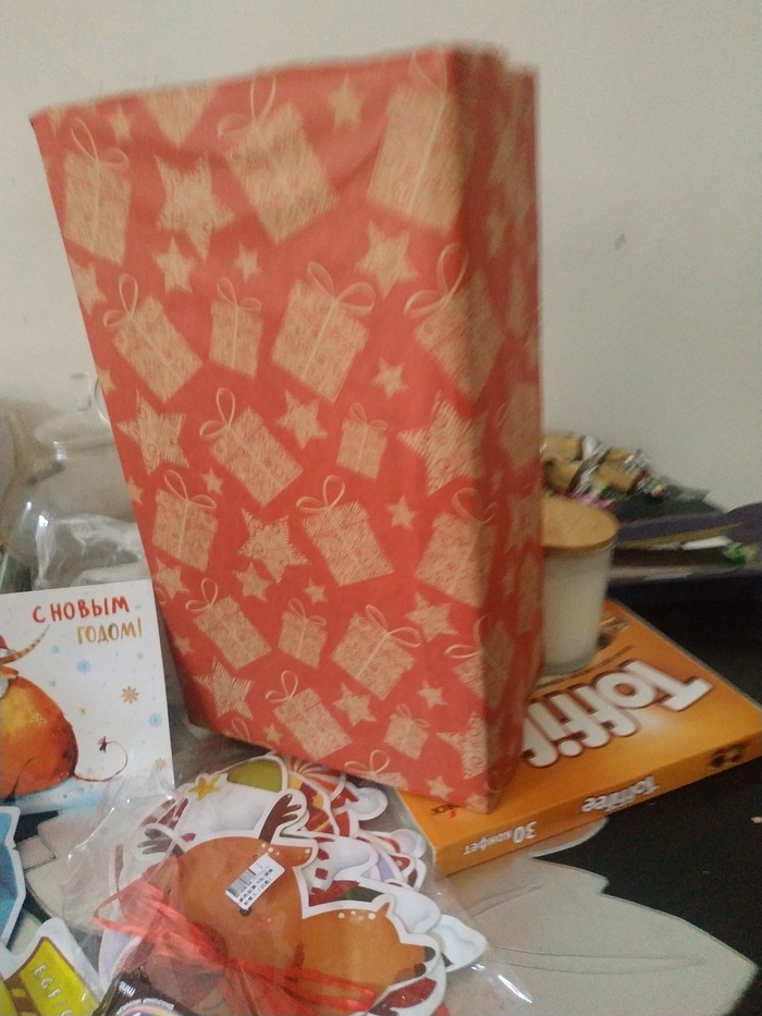 Две детские книги толщиной в микрон, на одной из них ценник - 139 р, мармелад за 90 р, горшок с семенами неведомого цветка, открытка и игрушка. Не буду скрывать, я очень расстроена. И так по ряду причин нет новогоднего настроения, так ещё и этот подарок убил его в ноль. Может кто объяснит, зачем участвовать в проекте, если отправляешь такое?