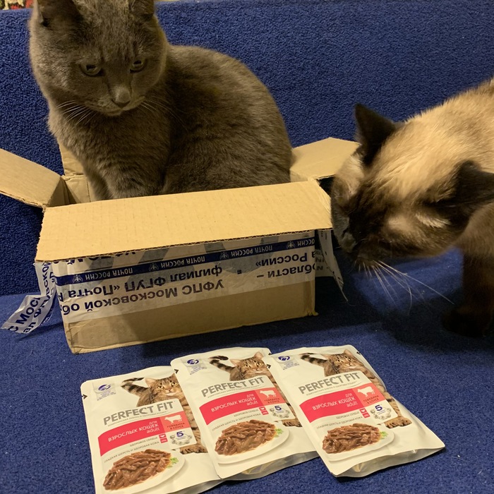Котейкам нашим гостинцы достались и коробка в придачу)