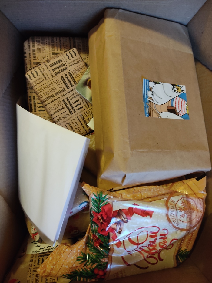 Вот они, чудесные сверточки, и, конечно, письмо, полное тёплых слов! А ещё из коробки загадочно поглядывает на меня мой любимый персонаж!