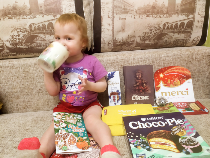 Всем хорошего вечера, а я с отчетом от мамы. Сегодня на повестке дня у нас замечательная новогодняя посылка от Ольги Сергеевны из Москвы!