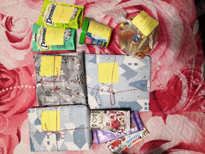 Интрига!!! Вся моя семья не осталась без подарка, и коты тоже. Каждый подарок был упакован и подписан.