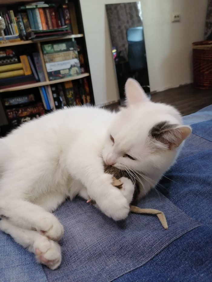 Отдельное спасибо за мышку, Пахому никогда не дарили подарки. И это была его первая встреча с кошачьей мятой!)