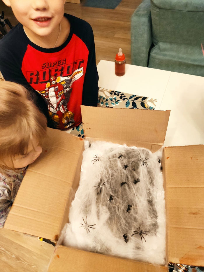 В коробке жуткая паутина с пауками. Арахнофобам пролистнуть)