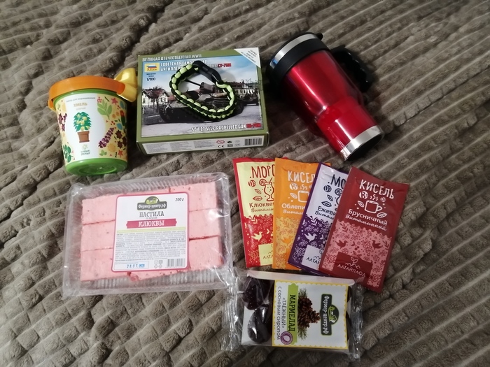 Вот и моя посылка пришла. Хочу сказать огромное спасибо моей снегурке из Новосибирска. Все подарки подобраны с учетом описанного в моем профиле. Тут и танчик мне в коллекцию, и дерево (хмель) и кружка в машину, за это огромное спасибо, так выходит, что именно зимой мне часто приходится проводить в дороге оооочень много времени, поэтому термосы не панацея, а кружка с подогревом поможет мне очень сильно. За пожелания отдельное спасибо, надеюсь тебе тоже повезло с подарком и всего тебе доброго, Л**а из новосиба.