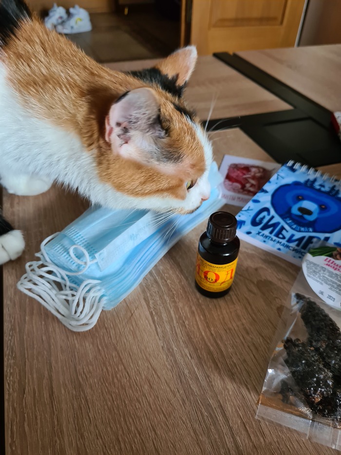 Признаться честно, я уже даже и не надеялась на получение посылки, как вдруг в приложении почты добавляется трек из Туапсе. Вес - почти три с половиной килограмма. Муж посмеялся, что мне едут три килограмма чурчхелы. И вот посылка дома! Котоинпекция за время карантина покинула нас, отправившись на свои кошачьи небеса, но детоинспекция не спит!