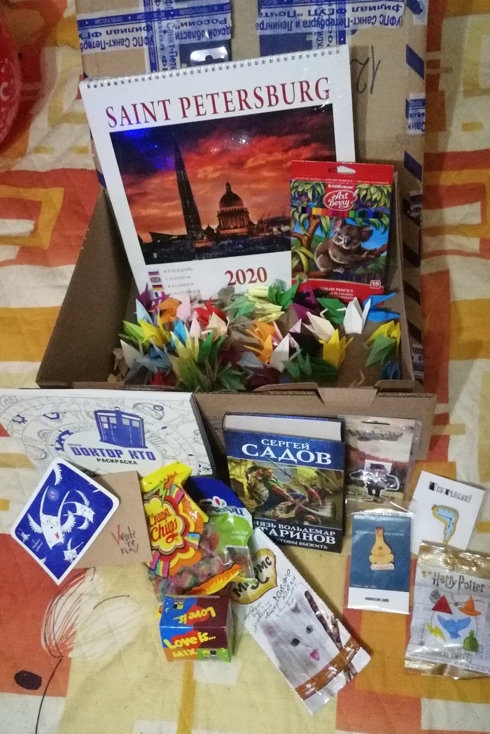 Здесь и пища для ума в виде двух очень интересных книг и чаёк(дождётся лета и будет заварен на костре), и крутая кружка(отправилась в мою коллекцию кружек), и вкусняшки к чаю в красивой коробке с видами г. Ульяновка и набор очень любимого мной лего!