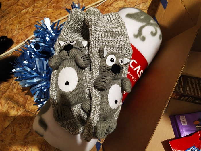 Под пледиком спрятались мимимишные котоносочки. Спасибо большое Снегурочке Евгении, что не забыла про мою аллергию на шерсть - носочки связаны из хлопка.