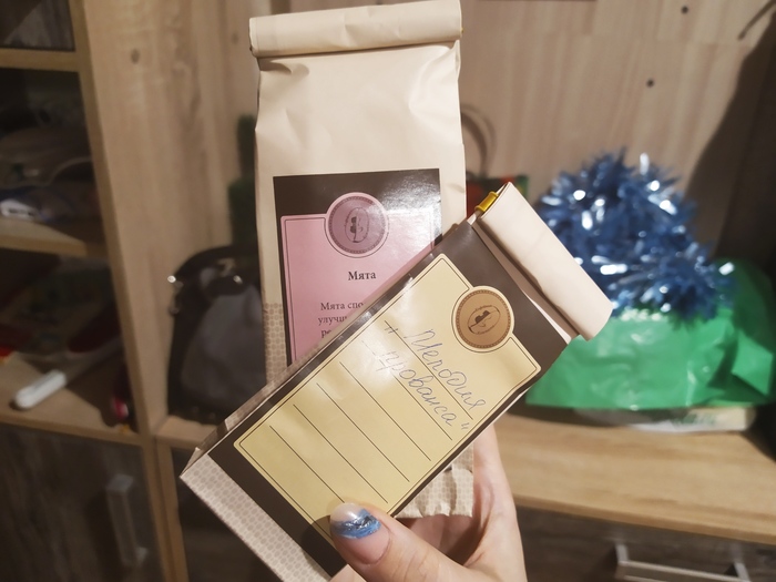 Далее я нашла обожаемую сушеную мятку, прованский чай (или специи, еще не пробовала), мармеладки и большууую шоколадку \(^▽^)/