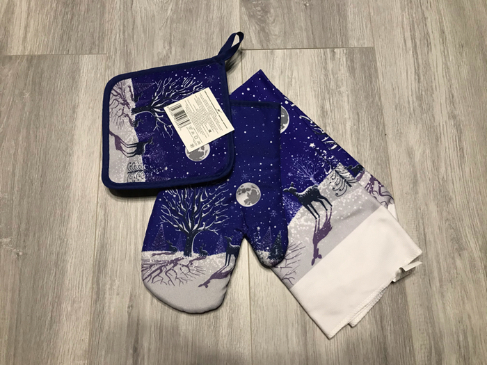 Очень понравились жене полотенчики, прихваточки, такие с нестандартным сюжетом рисунка, ни разу не встречали