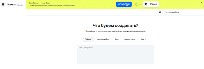 ✅ Кэмп (ex. Кампус) — сгенерирует реферат по ГОСТ за 10 минут прямо в Telegram с экспортом в Word и презентацию.