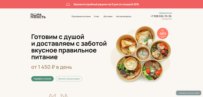 • Широкий выбор программ: стандартные и премиум-рационы, возможность регулирования калорийности, замена ингредиентов при необходимости.