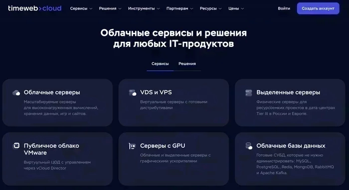 Timeweb — это про «взял — запустил — масштабировал». Почасовой биллинг, несколько локаций в РФ плюс зарубежные точки, понятные тарифы с низким порогом входа. Когда я делаю прототипы или MVP, часто беру именно здесь: поднял VM, покрутил, снял — и не переплачиваешь за сутки простоя.
