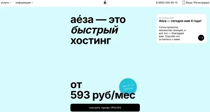 Aeza — это про мощность и скорость. Ryzen 9 9950X, NVMe, трафик без ограничений и до 25 Гбит/с. Если проект любит «железную» производительность, а трафик переваливает за приличные цифры — это один из самых вкусных вариантов. У меня на Aeza отлично чувствовали себя высоконагруженные боты и стриминг лёгких WebRTC‑штук.