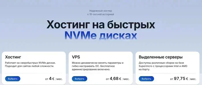 FirstVDS — тот самый знакомый, с которым спокойно. Локации в Москве, Нидерландах и Казахстане, KVM на SSD/NVMe, линейки тарифов под разные задачи — от «Старт» до «Атлант» и «Storage». Когда нужно просто и надёжно, без лишних спецэффектов, беру здесь.