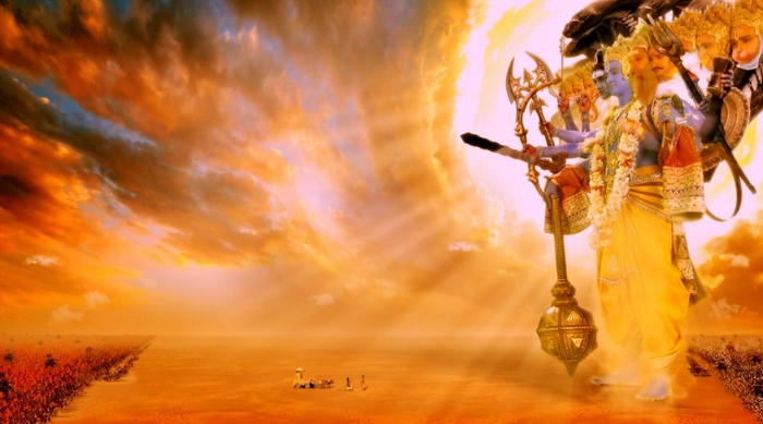 Интересно что финальная битва идёт не за мелкие интересы типа царства , а за понятие дхармы- подобие долга, справедливости .