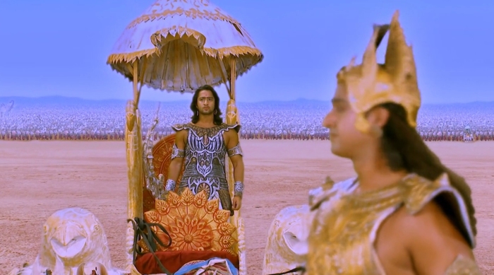 В сериале много философии . Например в начале финальной битвы воин-Арджуна начинает сомневаться , будет ли правильным убить огромные войска и своих родственников , ну типа "тварь я дрожащая или право имею , быть или не быть " , Так-же Арджуна говорит что не может убить своего дядю (как в звёздных войнах только до нашей эры )))).