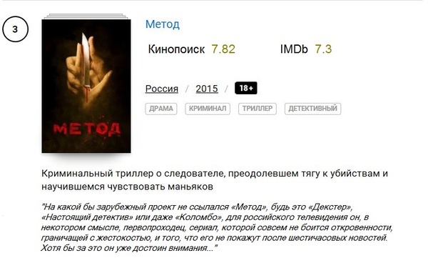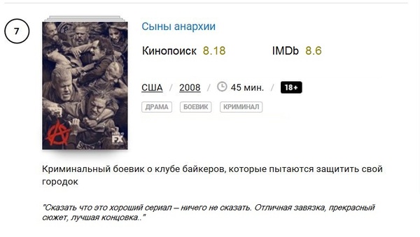 Довольно забавный сериал, низкая оценка которого на Кинопоиске может быть связана с невысокой популярностью сериала среди российского зрителя.