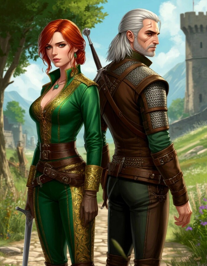 Шедеврум так себе справился с задачей изображения персонажей игры - само окружение нормально, а вот герои не очень , только общие черты. Косы у Сераны так и не получилось сделать, собственно как и у Лидии, да и на лицо совсем не похожа, Мьол Львица - ни как половина лица не закрашивалась, Орк вообще не получился, всё Варкрафтофская версия выходила. Но в целом я довольна, интересный опыт)