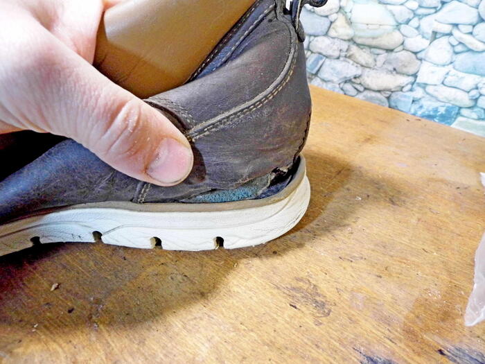 Далее идёт внутрянка: задники и стельки. Задники как мягкие - протираются на пятках, так и жёсткие, которые придают форму пяточной части. Для сохранности жёстких задников обуваться нужно с рожком для обуви, полностью расшнуровав или расстегнув её. Иногда задник ставится, чтобы совместить два вида ремонта. Например, штопку или латку.