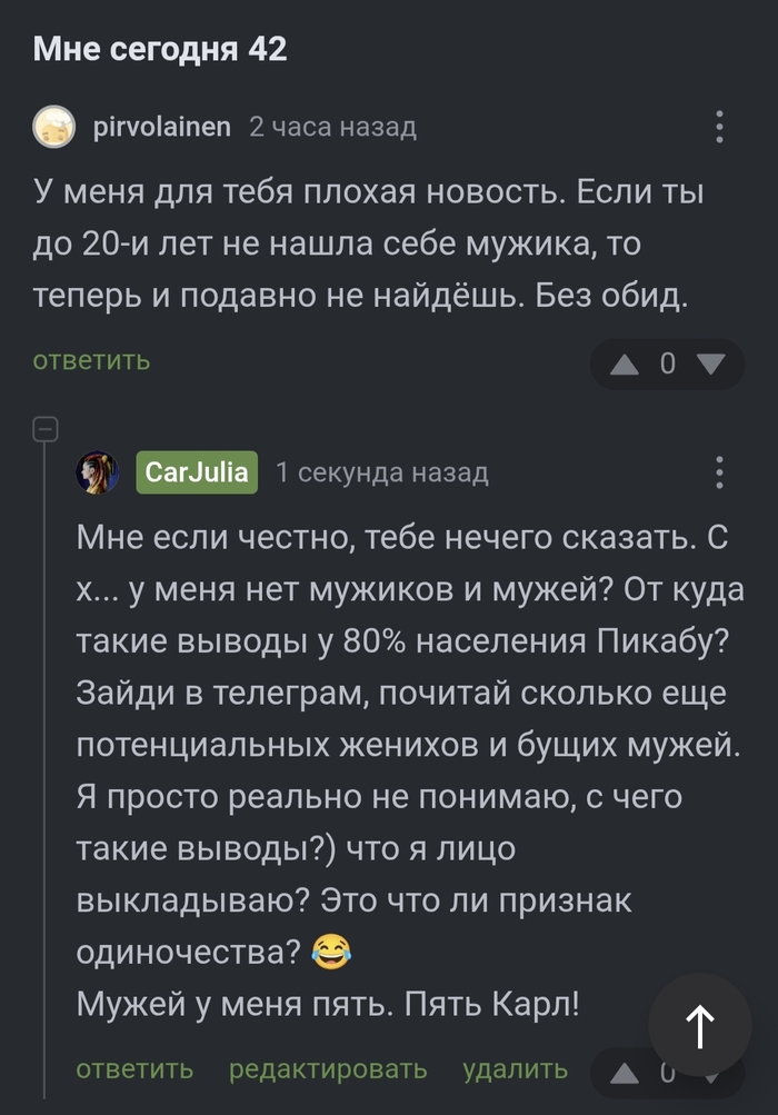 Я уж не выдержала поинтересовалась, каждый второй считает, что я нуждаюсь в мужике.