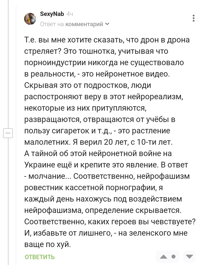 Кассетная порнография - это нейронетное видео. Чел каждый день находится под воздействием нейрофашизма, определение скрывается, в ответ - молчание...