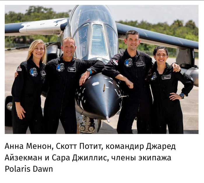 — Выход в открытый космос в миссии Polaris Dawn - осуществлён, это первый случай в истории, когда частные астронавты совершили выход в открытый космос с частного космического корабля! Поздравляем Джареда Айзекмана, Сару Гиллис, Кида Потита, Анну Менон и все команды SpaceX!