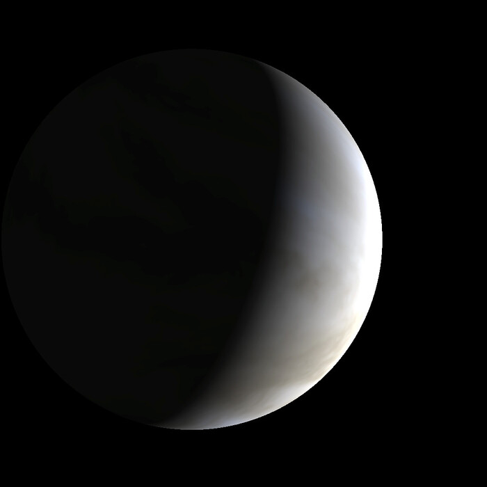 Моделирование видимости Венеры в дни элонгации в телескоп при большом увеличении, с той оговоркой, что такой контрастности деталей облачного покрова планеты без специальных фильтров не увидеть.