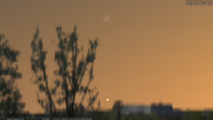 В этот же вечер — 20 июля — прямо над Венерой будет «висеть» молодой месяц.