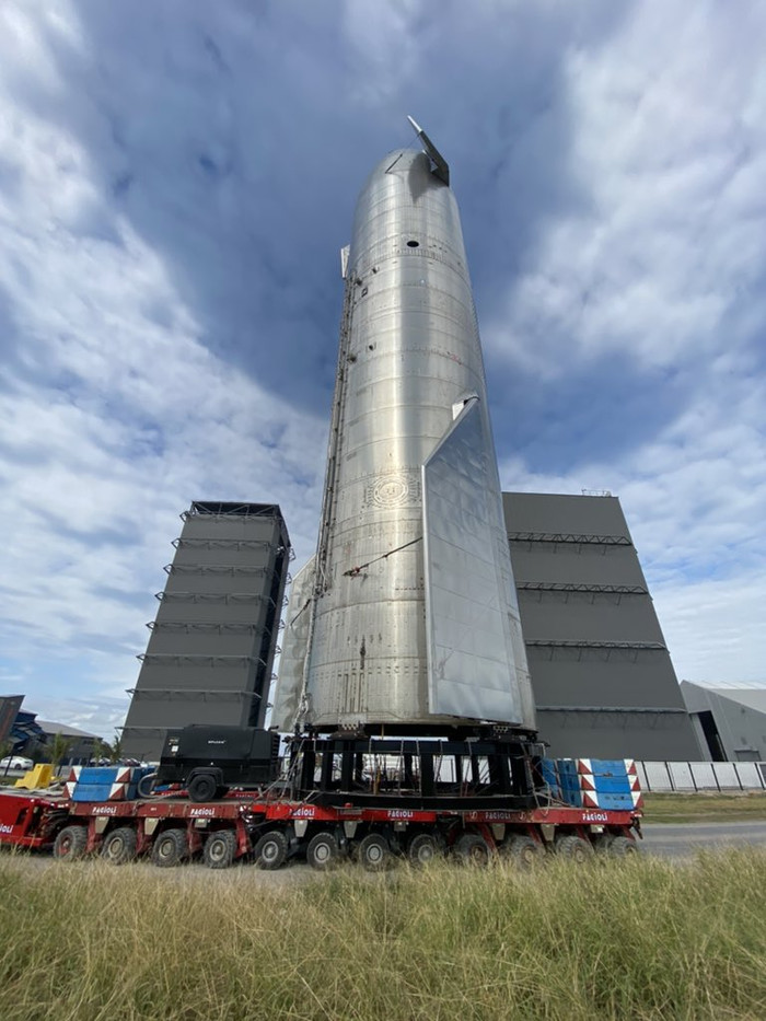 Спустя всего ~2 недели после первого высотного полета прототипа Starship SN8, SpaceX перевозят на стартовый стол SN9