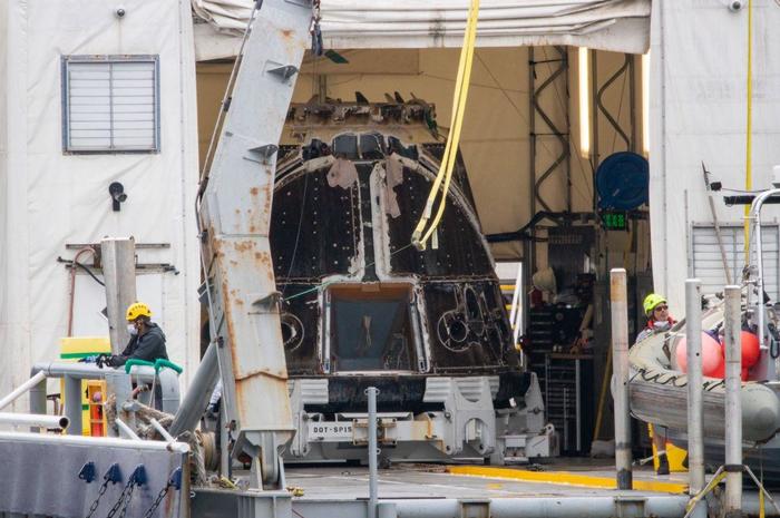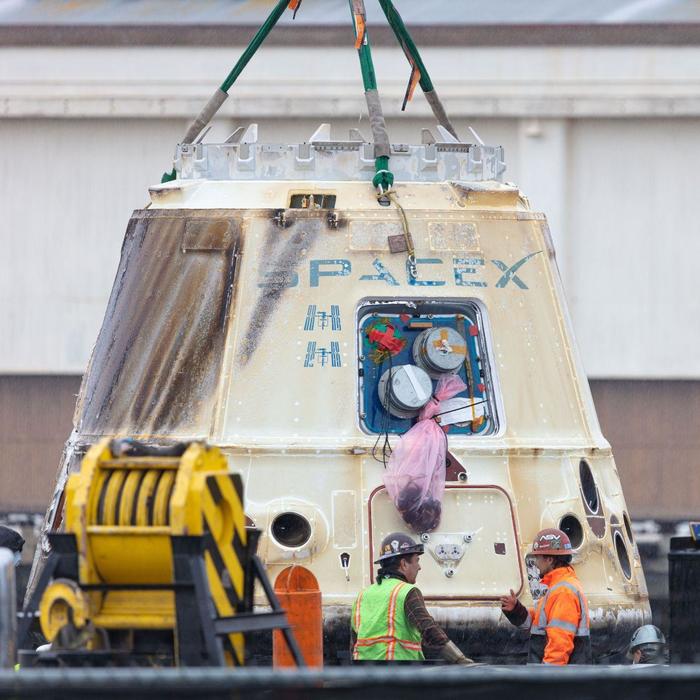 Фотографии возвращения корабля Dragon в порт Лос-Анджелеса