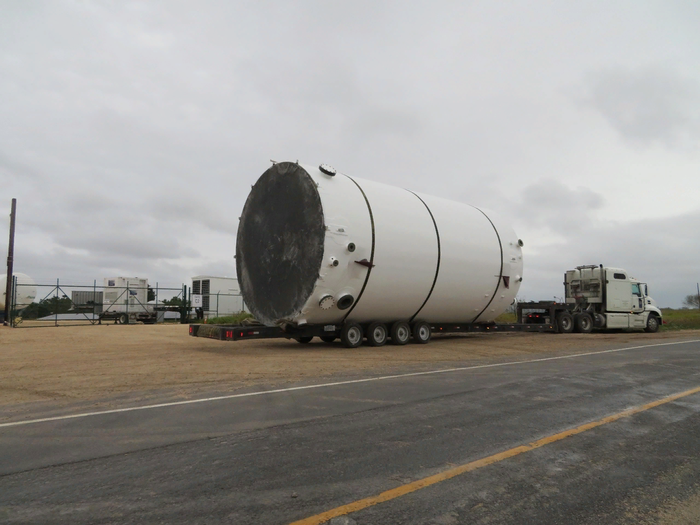 Также недавно на пусковую площадку для хоппера привезли нечто необычное (справа от белых ёмкостей), предполагают что это установка для газификации сжиженных компонентов топлива для Raptor: