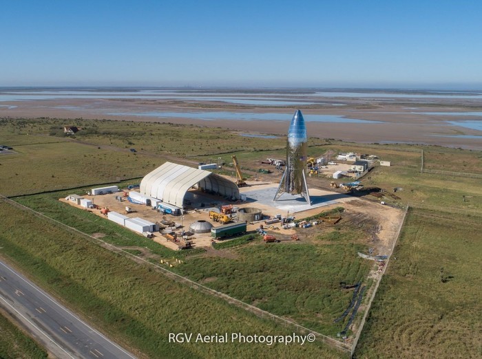 А также появились новые видеозаписи места сборки хоппера и строящейся пусковой площадки записанные с дрона: