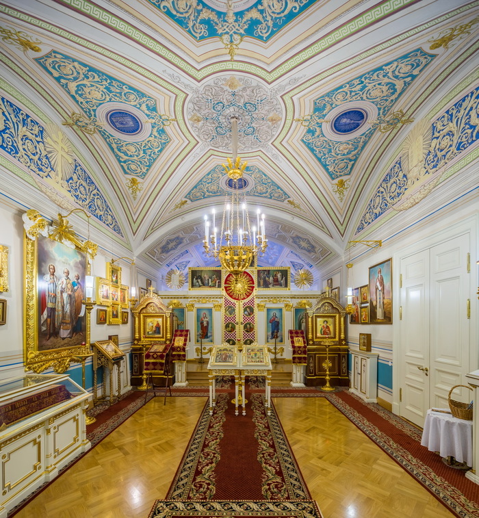 Церковь в здании Синода освящена 27 мая 1835 г. Во имя святых Отцов Семи Вселенских соборов. Это посвящение во имя наиболее прославившихся своими деяниями святых Отцов, принимавших участие во Вселенских соборах.