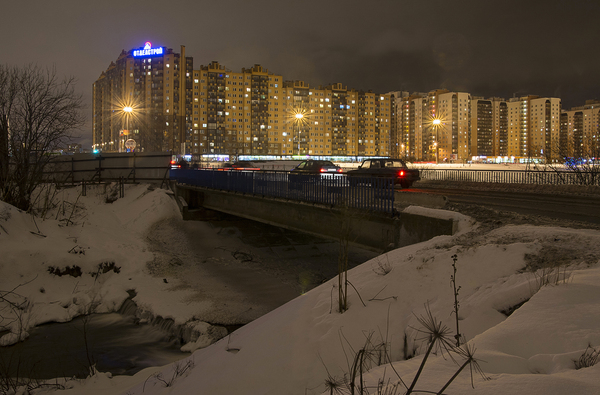 Именно в эти дома на заднем плане и ведёт предыдущий мост. Когда я вёл эту съёмку, стройка была ещё в полном разгаре, шла круглосуточно.