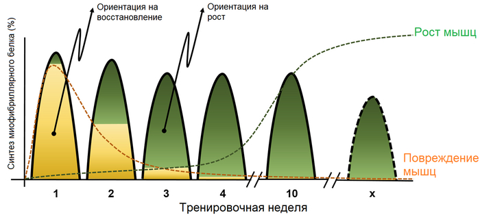 Программа, вызывающая умеренное повреждение, будет наиболее подходящей для максимизации мышечного роста.