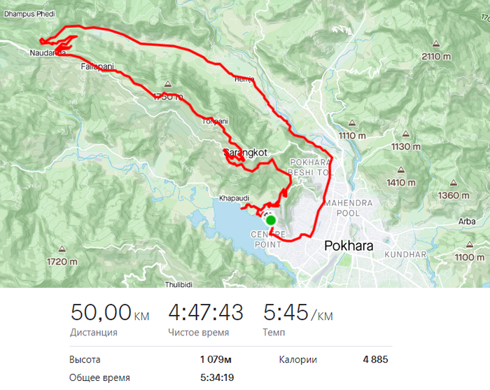 Общий маршрут получился такой. Пора завязывать с длинными тренировками, скоро забег.