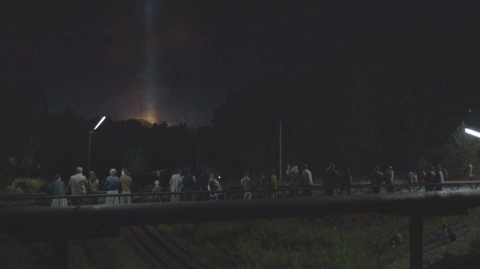 В сериале несколько десятков жителей Припяти в ночь аварии выходят на мост, чтобы понаблюдать за заревом пожара на ЧАЭС, не осознавая риска от радиации.