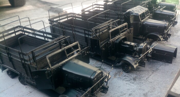 Отдельно окрасил раму с двигателем и интерьеры кабины и кузова, перед проведением финальной стыковки