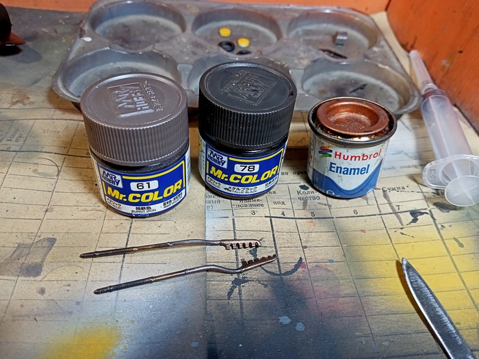 9. Окрашиваем выхлопные патрубки цветом бронзы, горелого железа и чёрным металликом.