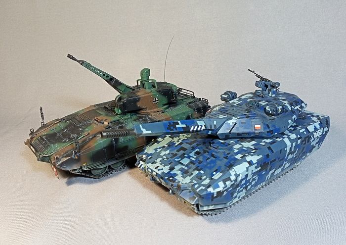 Представлена модель польского лёгкого танка PL-01 с модулями дополнительной брони, 120-мм пушкой и крупнокалиберным пулемётом. Танк из вселенной What if?, не имеет исторической привязки. Несёт четырёхцветный цифровой камуфляж Urban Cammo. Польша, Демблин, 2027 год. Модель фирмы Takom, масштаб 1/35.