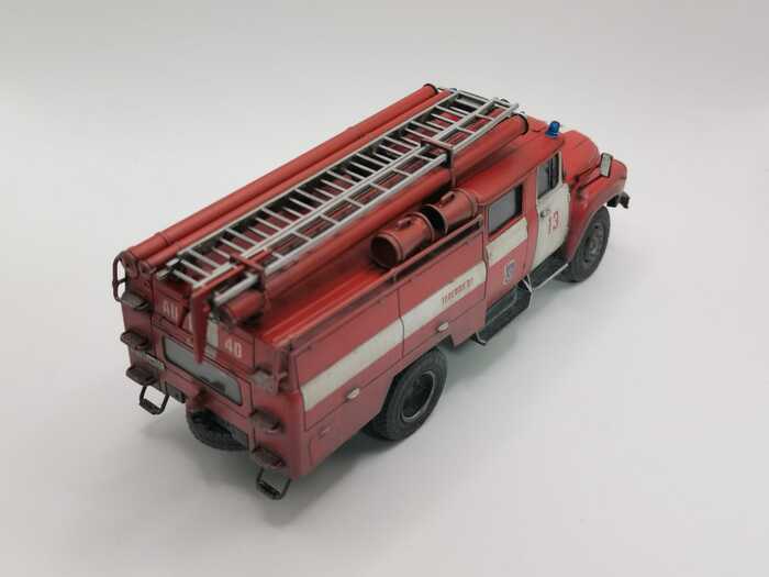 Сильно ззагрязнять модельку не стал, все-таки за пожарными машинами следят тщательнее, чем за строительной техникой,однако оставить модель без загрязнений тоже не мог, слегка припылил колеса и борта, размазал грязь по днищу, будто бы машина только едет с вызова из какой-нибудь отдаленной местности.
