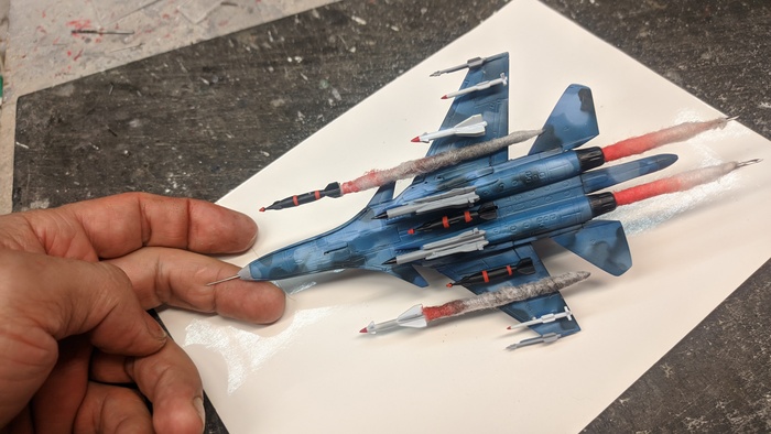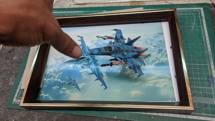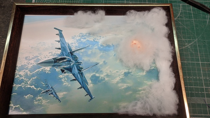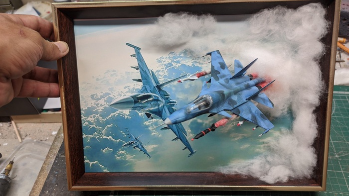 Далее всё закрепляем всякими клеями и немного подкрашиваем аэрографом облака голубым и слабо серым цветами .