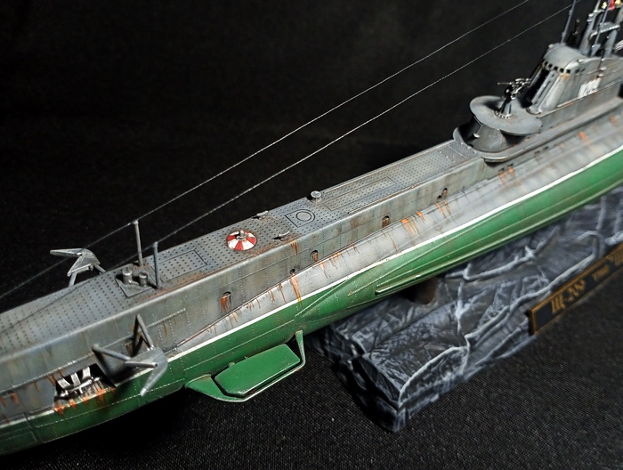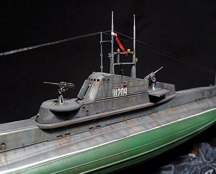 Представлена модель подводной лодки класса «Щука» серии Х Щ-209 3-го дивизиона 1-й бригады ПЛ Черноморского Флота, совершившей в ходе Второй Мировой войны 18 боевых походов, потопившей одну немецкую десантную баржу, две турецкие транспортные шхуны и вынудившую экипажи покинуть ещё две шхуны, также совершившей два транспортных рейса в Севастополь. Представлена Щ-209 в окраске довоенного периода, с установленным сетепрорезателем «Краб», Чёрное море, 1936 год. Модель фирмы «Звезда», масштаб 1/144.
