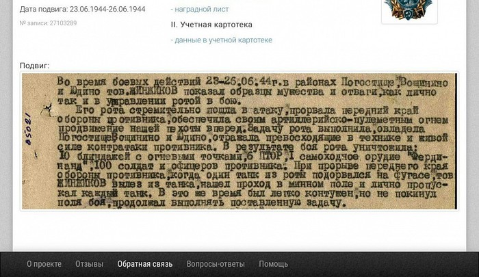 Машина носит собирательный образ, но изначально делалась по конкретной выдержке из наградного листа (фото прилагается). Если нет времени читать, то в двух словах - танк проходил по минному полю. Главное условие - потрёпаный внешний вид танка и снятые сегменты надгусеничных полок, поврежденные взрывами.