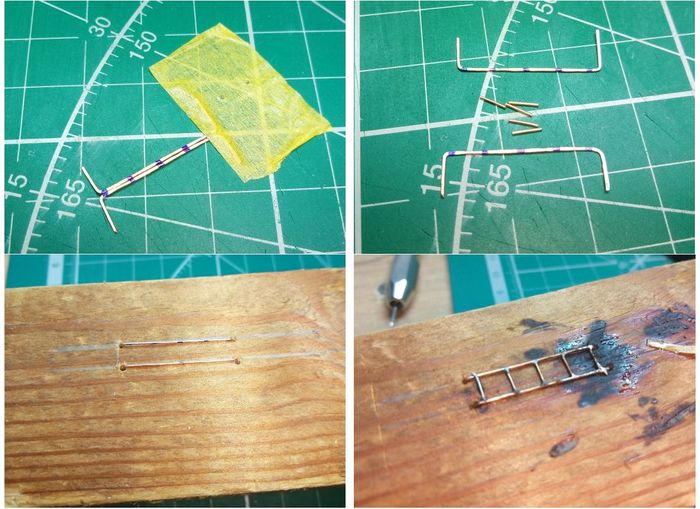 Решил заменить плоские упоры, которые шли в комплекте набора в виде фототравления, на самодельные из проволоки от витой пары. Отрезал 40 штук по размеру, затем по краям сдавил пассатижами.