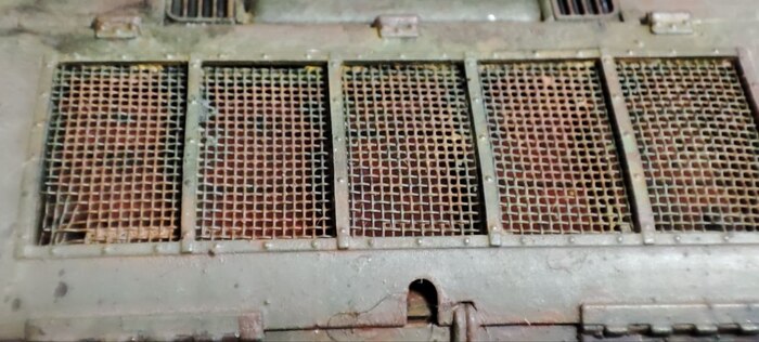 На маске орудия попытался передать текстуру литой брони методом покрытия пластика модельным клеем в несколько слоев и дальнейшего браширования жесткой кистью.